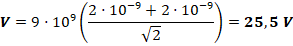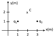 Donde r1 y r2 son las distancias al punto C de las cargas