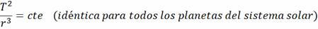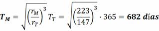SOLUCIÓN a) Podemos obtener directamente los periodos orbitales aplicando la tercera ley de Kepler tal como fue formulada por Kepler para los planetas que orbitan en torno al Sol: Aplicándolo a los 3 planetas que se proponen: Resolviendo con los datos de la tabla: Haciendo lo mismo con Marte: Hemos usado unidades cualesquiera, con tal de ser las mismas, pues solo interviene proporción de valores Para obtener la masa del Sol necesitamos además la LGU Aplicándola al caso de la Tierra podemos escribir: Nótese que aquí sí debemos utilizar unidades del S.I. También podríamos haber resuelto esta cuestión de la masa del Sol en primer lugar y después con la misma expresión haber obtenido los periodos orbitales de Venus y Marte. Pero habría que haber utilizado los radios orbitales de ambos en unidades del S.I. b) Ver Septiembre 99-00, Opción B c) La energía mecánica de un astro en órbita circular es igual a la mitad de su energía potencial. Por tanto podemos escribir: Observemos que la energía total es negativa, coherente con que el sistema es un sistema ligado y esa es la energía que habría que comunicar a Venus para que abandonara el sistema solar La velocidad de escape desde la superficie de un astro es: Imponiendo la condición de que la velocidad de escape de Marte es la mitad que la de la Tierra, obtenemos: Que tras simplificar obtenemos: |