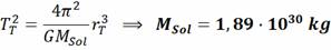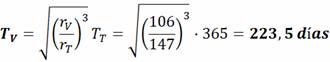 a) Suponiendo que los planetas del Sistema Solar se mueven en órbitas circulares con los radios orbitales dados en la siguiente tabla, obtenga la masa del Sol y el periodo orbital de Venus y Marte