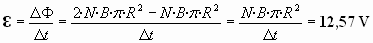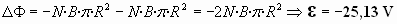 Este flujo se duplica por efecto de la duplicación del campo en dicho intervalo de tiempo. Por lo que, según las leyes de Faraday-Lenz, se inducirá en la bobina una fuerza electromotriz ε que se opondrá a dicha variación del flujo magnético, de valor: