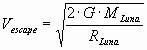 - Velocidad de escape desde la superficie de la luna: es la velocidad mínima que debe tener un cuerpo en la superficie de la Luna para poder escapar de su atracción, o sea, llegar al infinito con velocidad nula.