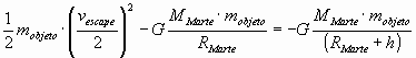Se lanza verticalmente un objeto desde la superficie de Marte, con velocidad inicial igual a la mitad de la de escape. Calcula la máxima altura sobre la superficie, h, que llega a alcanzar el objeto.