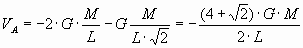 Llamando 1, 2 y 3 los vértices del cuadrado donde se encuentran las masas M en el sentido horario, (comenzando en el vértice A) los potenciales que crean las masas M de los puntos 1 y 3 son iguales al ser la misma la distancia al punto. En el caso de la masa en el vértice 2, la distancia corresponde a la diagonal del cuadrado de lado L.