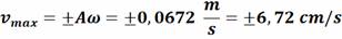 Recordando la expresión del periodo de un péndulo en función de su longitud: La frecuencia angular se puede obtener a partir del periodo: Si en t = 0 s el péndulo se encuentra en x=A, es conveniente usar la función coseno para escribir la ecuación del movimiento: Al pasar por la vertical (punto más bajo y de equilibrio) llevará su velocidad máxima: El signo indica el sentido en que se mueve en los sucesivos pasos por la vertical |