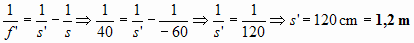 La imagen se forma a 1,2 m a la derecha de la lente, luego será real