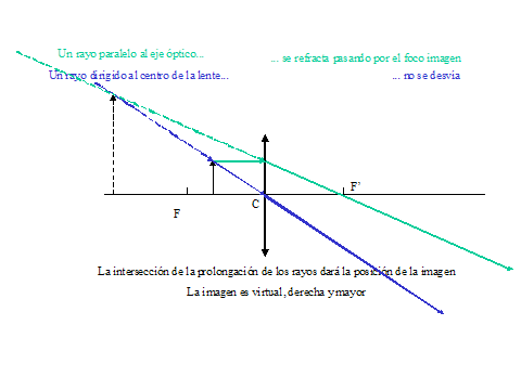 La imagen se forma a 1,2 m a la izquierda de la lente, luego será virtual